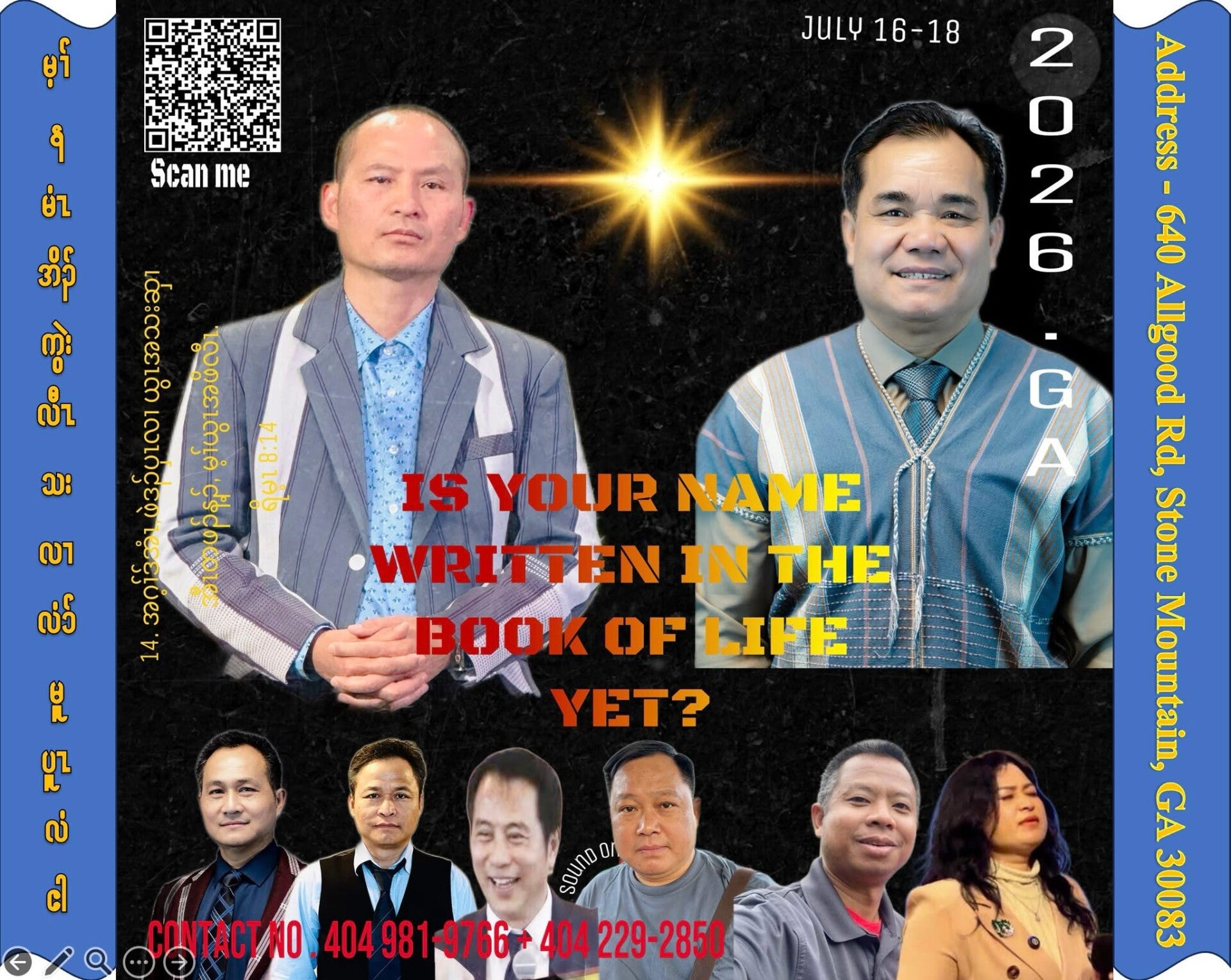As previously planned, On July 16-18 /2026. We are have Youth conference ( Is your name writing in the book of life yet? ) So, We're inviting you, and everyone to join with us at this time, May God Bless You All.