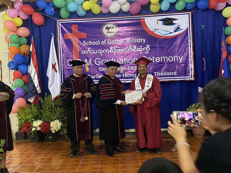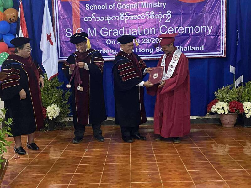 School of Gospel Ministry graduation first generations on July 13/2023 In Mae Sariang, MHS THAILAND